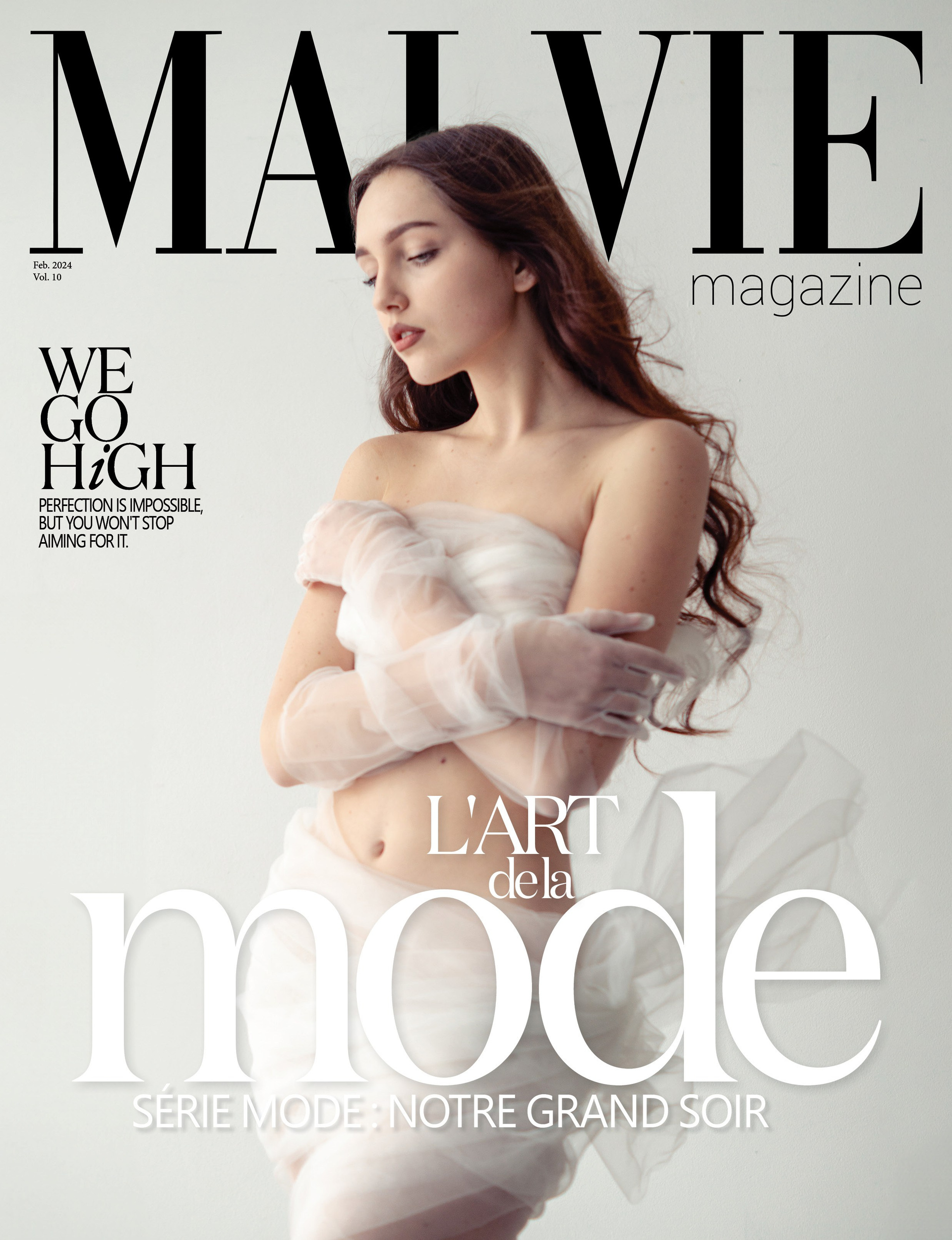 Съёмка с белым фатином, которую опубликовали на обложке французского журнала Malvie.