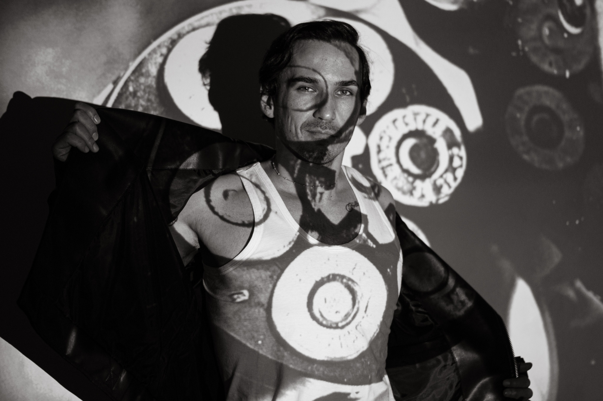 Съёмка с проектором. На модель проектируется изображение с ноутбука дополняющие образ. Можно проектировать любые картинки от сердечек и цветочков до патронов и денег. Отзыв на съёмку в соответствующем разделе.